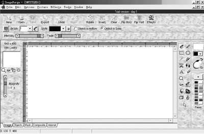 ImageForge Pro 3.22为共享软件,与Windows 9x/NT/2000/ME/XP完全兼容,身躯小巧。可说是一套功能完备的影像处理软件,具有内建自然触感的笔刷、高级辅助工具、自定笔刷、特效滤镜、扫描仪及还可制作AVI动画、幻灯片、3D文字/图形、图像合成、屏幕捕捉、批次转换文件等。而且还有网页使用的图像地图、相片缩微图、动态按钮、水印、滚动式菜单等。能自动生成相关的HTML名称,是你编辑相片的好帮手。我们通过http://download.pchome.net/php/dl.php?sid=97就能把它带回家,试用期20天。