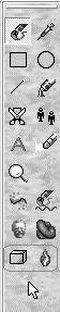 通常,图像编辑软件很少提供立体图形和文字制作功能。令人很难想像的是,这个功能在ImageForge中也能找到。你只要利用操作界面右侧的绘图工具中的“3D Object Tools”(立体物体工具),以及“Light Source for 3D Objects”(立体物体光源)两个小工具(如图4),就可以轻易制作出立体物体。