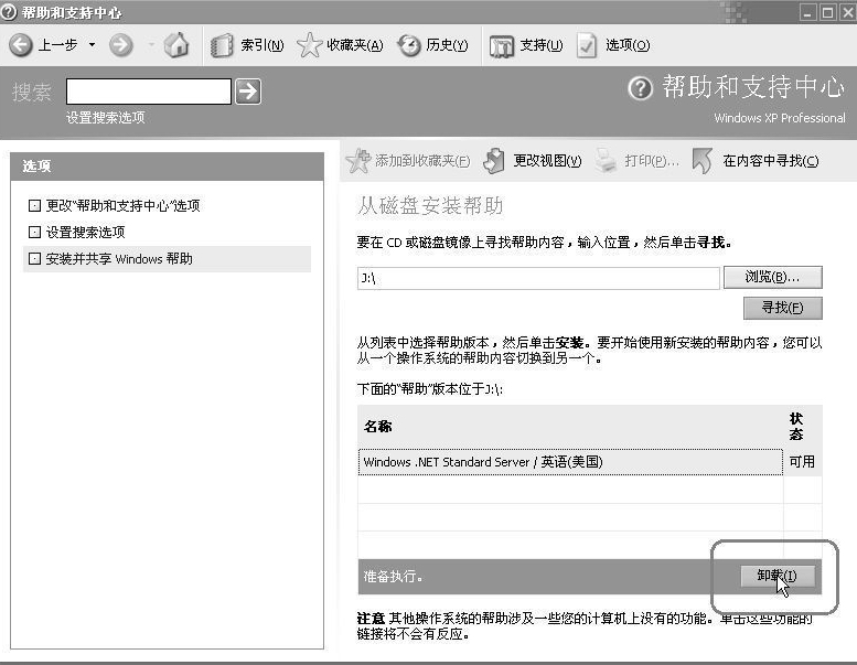 Win XP Professional中添加了一个新功能,该功能支持安装Win .NET系列和Win XP系列中的任何一个版本的帮助。在使用Win XP Professional简体中文版中的这个新功能时,笔者发现了一个图标上的错误,把本应是“安装”的图标制作成了“卸载”。