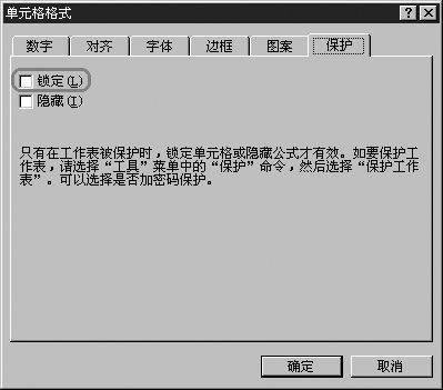 ①在左上角行、列交汇处单击鼠标,选中整个工作表,执行“格式→单元格”命令,打开“单元格格式”对话框(如图6),切换到“保护”标签下,清除“锁定”选项前面复选框中的“∨”号,确定退出。