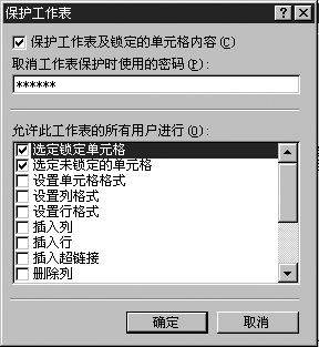 ④执行“工具→保护→保护工作表”命令,打开“保护工作表”对话框(如图9),两次输入密码后,确定退出(也可以不输入密码而直接确定退出)。