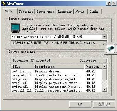1.以一块64MB的Ti4200为例子,搭配的驱动为雷管40.72 WHQL微软认证版驱动。首先运行RivaTuner,只需要用鼠标双击程序的可执行文件即可启动它。