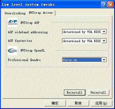 如果安装了通过SoftQuadro4修改后的驱动,想要恢复雷管的驱动有一种比较安全也比较有效的办法。重复2~4步骤,把第三项“Professional Quadro”一项设置为“Force off”然后重新启动,就可以像以往一样安装雷管的驱动了。