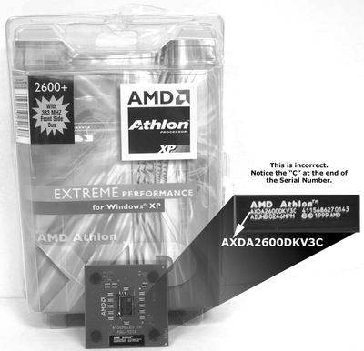 自从Athlon XP处理器盒装产品的问世,大部分人已经倾向于购买这种附带原装风扇的产品,那样会买得更放心。但是,最近在美国的零售市场上,一家电脑产品经销商发现AMD在Athlon XP 2600+盒装产品上误将266MHz FSB的Athlon XP 2600+放在了333MHz前端总线的Athlon XP 2600+包装盒中。不知道是AMD的一个小失误,还是这一批产品都是这样的。这里提醒消费者,小心看清自己购买的产品,万一买了这种产品,经销商可都是不管换的哟。