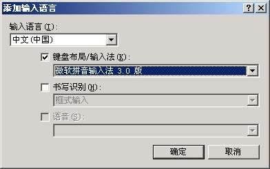 1.添加输入法:右键点击任务栏右边的输入法图标,再点“设置”,在弹出的“文字服务和输入语言”对话框中单击“添加”按钮,出现“添加输入语言”对话框(如图)。勾选“键盘布局/输入法”,再从下面的下拉列表中选择需要安装的输入法(中文输入法在列表的最下面)。如果还要安装绘图板等书写识别系统,也同样在该对话框中选择。最后单击“确定”返回前一对话框。
