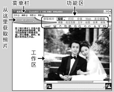 1.点“相片” 按钮,打开一张你需要做处理的照片。这里我们选择一张婚纱照,如图1中的照片。
