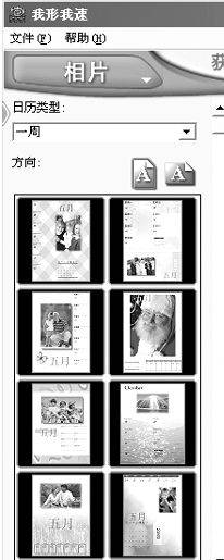 7.点“分享→日历”在左边的设置窗口中,提供了各种样式的日历供你挑选,如图7所示。我们挑选一个好看的吧。这里是根据每个月份来设计的,我们可以设计12个月的做一套完整的年历。
