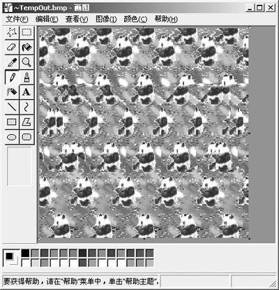 步骤4:生成最终图形。点击“开始生成”按钮,在软件的安装目录下将生成名为“~TempOut.bmp”的文件,同时启动“画图”软件将它打开(图4)。