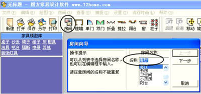 在设计的开始首先要有一个户型图纸作参考,我们就以第1期的户型图为例吧。启动圆方家居设计软件3.0版(在http://www.72home.com网站免费下载它的在线版),它的工作界面如图1。今天我们就用它的一些功能向导来完成我们的设计。