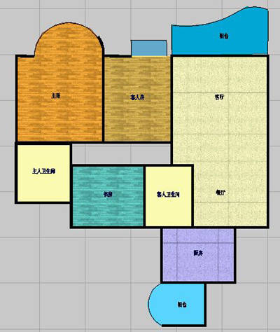 按照上面的方法,设置好所有的房间(图4)。现在看上去,还是有些别扭,那是因为没有门窗,还有客厅与过道之间多了一道墙。没关系,门窗我们随后就解决,至于多的那道墙,用鼠标选择它,然后按鼠标右键删除就可以了。