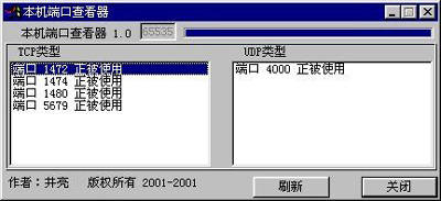 说到这儿,就要理论结合实践一下了。笔者推荐一款网络端口查看器供你使用,你可去http://www.csdn.net/cnshare/soft/9/9213.shtm下载。笔者在自己的电脑上打开了两款即时通信软件──QQ与MSN。然后进行扫描就可以发现QQ使用的是UDP4000端口,而MSN则是使用TCP1474及1480端口(图1)。由此联想以前笔者遇到过MSN发消息对方收不到的情况,原来MSN使用的是TCP协议。TCP消息发出去后就不管了,而UDP则还要确认一下是否收到。细心的读者可以发现,使用MSN发消息很快,而有时用QQ发送消息则比较慢,这就是因为QQ还要等待对方的应答消息,另外从这个软件中我们也可以看出端口的编号是到65535为止。有兴趣的读者不妨多多使用这款软件,进一步了解常用网络通信软件的通信端口(比如Netmeeting等)。