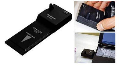 网络连接技术自然不会被小灵通的开发商所遗忘。利用小灵通实现移动上网的产品有上网数据线,而一种被称为“小灵猫”的产品也出现在我们的视线中。另外日本松下公司还生产了一款集PHS,PC-CARD为一体的网络联接设备PHS VS-2620A,也已经在国内市场露面(图7)使用时直接插入笔记本电脑的PCMCIA插槽就可以实现无线上网功能,其连接速率可达29Kbps。