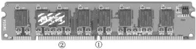 ①内存脚缺口:内存的脚上有两个缺口,这个缺口一是用来防止往内存槽中插内存时插反了(只有一侧有缺口);二是用来区分不同种类的内存(详见F4版《看缺口识内存》一文)。②金手指:一根根短短的黄色接触片,是内存条和主板内存槽接触的部分,数据就是靠它们来传输的。③内存芯片:数据就存储在这些芯片中。