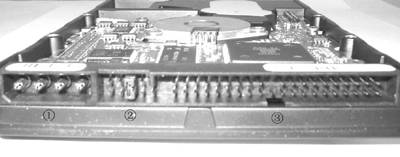 ①电源接口:接机箱电源的硬盘电源线。②主从跳线:一台电脑如果连接了两个硬盘,只能用其中的一个硬盘来启动系统,因此必须把它们区分开来,为此硬盘上提供了一组跳线来设置硬盘的模式。③数据线接口:接数据线,数据线的另一头接到主板的硬盘专用接口上。