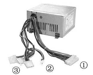 ①主板电源插头:接主板电源接口。②软驱电源插头:接软驱电源接口(插头中较小的那个)。③硬盘光驱电源插头:接硬盘和光驱的电源接口。