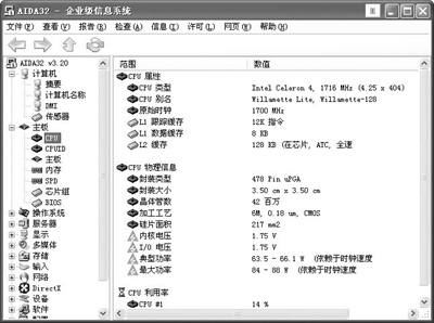 CPU是一台电脑的核心,也是最容易碰到假货的配件,下面就让我们用AIDA32去验明它的正身。