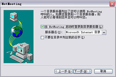 2.在Netmeeting第一次启动后出现的配置向导中,根据提示填入相应的个人信息,并设置好相应的目录服务器(图3)。