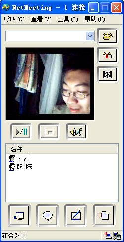 5.如果在图3中未选择登录到任何目录服务器,则需要先在NetMeeting的主界面中输入对方的当前公网IP,然后单击“连接”按钮(电话机形),对方确认后即可建立连接,此时就可以在主界面的“视频显示窗口”中看到对方了(图6)。当然,同时还能进行语音和文字聊天。