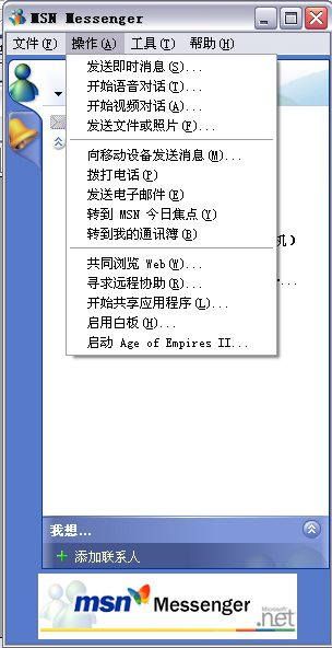 1.在正确安装好帝国后,在Messenger的“操作”菜单下即多出了一个类似于“启动Age of Empires Ⅱ”的项目(图3)。