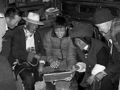 首先,根据室内的照明光源(白炽灯)考虑白平衡设置。经过从数码相机的液晶屏上观察效果,如发现自动白平衡设置基本满足要求,接下来,就要设定合适的曝光组合。如果拿不准该设置什么样的曝光模式,可以先拍几张试试。SONY DSC-F505数码相机可以手动设置快门和光圈数值,因此我们在拍摄时根据当时光线环境情况,选择了f2.8 1/60秒这样的曝光组合。前面提到,1/60秒的快门速度是一般人可以进行手持相机拍摄的极限快门速度,为了保险起见设置快门为1/60秒。打开闪光灯,采用自动设置即可。准备好数码相机的各项设置,就可以适当安排被摄者的位置。安排被摄者的位置要注意突出主题,保持画面的平衡即可。例如在图6中,将使用笔记本计算机进行演示的人物安排在中间,周围则是好奇的一家人,将左右的男女老幼合理分布,整个画面就比较生动了。此外,别忘了尽量将人物安排在同一平面上。一切准备停当,抓住各人物较好的神态时机,按下快门,一张满意的室内合影就诞生了。拍好了照片,立刻和在座的亲朋好友分享快乐吧!