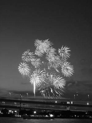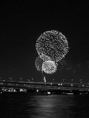 掌握了以上这些基本技巧以后,我们来看看图11、12这两幅节日庆典中燃放的礼花焰火是如何拍摄的。首先,我们要选择好拍摄的地点。节日庆典中燃放礼花的活动都会事先发布通知,可以根据这些通知选择合适的地点。选择地点要注意是否场地有架设三脚架的空间,是否有良好的视角。如果所选择的地点有可能被建筑物或者拥挤的人群遮挡住拍摄视角的话,最好另行挑选更好的地点,当然,如果有楼顶等制高点是最好的。还要看看燃放礼花的方向是否有比较漂亮的前景,一个好的前景会为照片添色不少。例如,图11、12是一次节日中在日本东京湾燃放礼花的场景。选择的拍摄地点位于一个楼顶的平台上,而就在焰火燃放的方向,有一条高架公路,夜晚的高架公路正好作为拍摄礼花的前景。