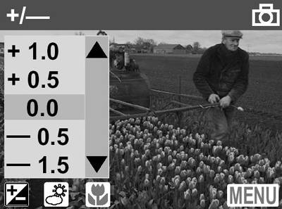 数码相机的拍摄菜单下,通常会有曝光补偿选项,选择此选项增加曝光量,来对雪景的拍摄进行补偿(如图13)。具体应该增加多少曝光量呢?这个也需要经验来帮忙。经验不够?没关系,别忘了我们是在用数码相机拍摄,多更改几次设置,多拍摄几张照片就可以了。要提醒的是,在拍摄完雪景之后别忘了把曝光补偿设置调整为“0”,以免造成后来拍摄的照片曝光不准确。