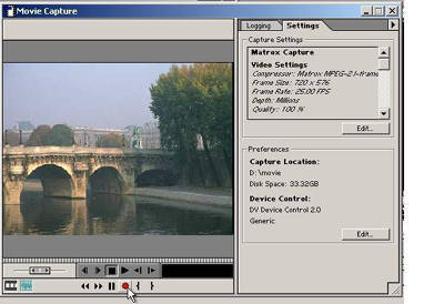 如果你的外接数字设备已经打开电源,在Movie Capture窗口中单击“Play”按钮,就可以控制摄像机播放了。如果你准备开始采集,可以单击红色的录制按钮进行视频采集(图3)。