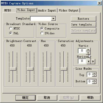 5.切换到“Video Input”选项卡,设置视频信号源,如果是复合信号输入,可以选中“Video Source”栏中的“Composite Video”选项,如果使用S端子输入,可以选择“SVideo”选项。同时设置视频制式为“PAL”。另外,还可以在这里调节输入亮度、对比度、灰度等参数值,一般可以保持系统的默认值(图3)。