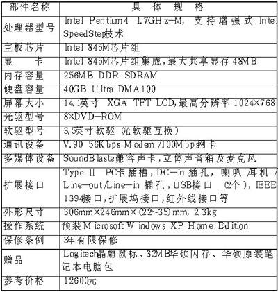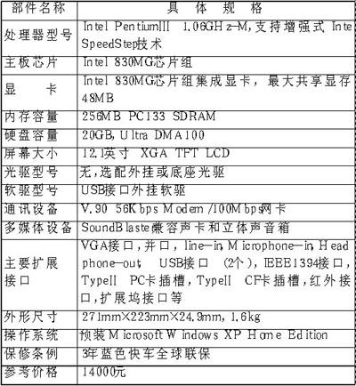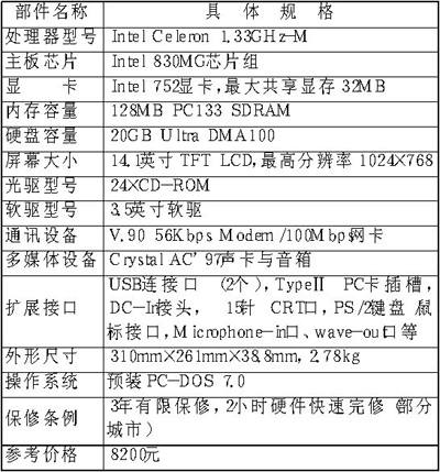 对于在校大学生而言,笔记本电脑的用途主要是用来进行编程、文字处理、上网浏览、多媒体学习,闲暇的时候也可玩一下游戏。在现阶段,购买一台笔记本电脑对于大多数学生而言仍是一笔不小的开支,所以选购思想应该是“够用就好”。相对而言,采用Intel移动版赛扬处理器的笔记本电脑,以其较高的性价比而成为我们的主要选择对象。