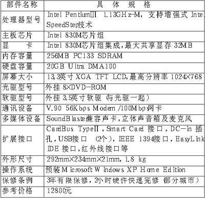 有人说,2002年是笔记本电脑成长的一年,而2003年将是“笔记本电脑年”。的确,在已经过去的一年里,伴随着一轮又一轮的降价风潮,笔记本电脑逐渐从“旧时王榭堂前燕,飞进寻常百姓家”。这无疑是去年电脑市场上的最大亮点。为了占领市场并巩固市场定位,各笔记本电脑厂商在提高售后服务质量的同时,更加强了新品的研发。而相应地,很多消费者也开始把关注的目光投向轻巧便携的笔记本电脑,更有很多人打算在春节前购买一台适合自己的笔记本电脑。在此我们推荐部分品牌和型号,为大家的选购指条路。