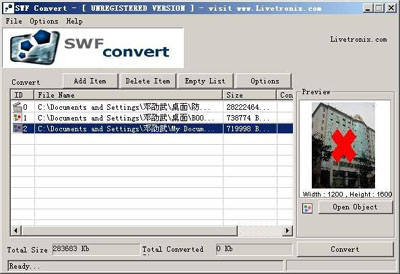 SWFConvert是一款非常方便的Flash转换工具,除能将AVI文件转换成Flash外,还支持BMP、JPG、PNG、PSD、PCX、PAX、TGA、TLA、TIF、WAV等图像声音文件的转换。