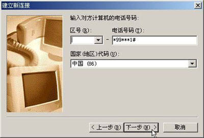 拨号设为*99***1#(图8),同Win2000/WinXP下,用户名和密码留空。