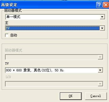 4.将笔记本电脑里的“属性/设置/高级”进入显示器模式标签。找到显示器模式画面。各种品牌的笔记本电脑进行的方法和画面会有一定有差别。如图2为清华紫光笔记本电脑的显示画面。在驱动器模式(Driver mode)选项下选单一模式(single)。去掉自动(Auto)选项前的“√”,在主显示(Primary)菜单中选“TV”,分辨率选“640×489”或“800×600”,只要电视机显示清楚就可以了。点击“yes”确认。电视画面就变成了电脑的显示画面。就这么简单。赶快找部精彩的大片看个够吧。