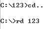还记得怎样建立一个目录吗,好像是用MD命令?!方法为MD加空格加目录名。相反,如果这个目录里没有了文件和子目录,那怎么删除它呢?!简单,用RD命令吧!比如要删除123这个目录,先输入CD..退回到上一级目录,再输入RD 123就将该目录删除啦(图25)!前提是这个目录是空目录哦。