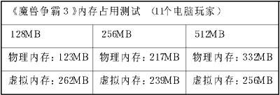 首先是《魔兽争霸3》的试玩,在这里内存容量的大小导致的游戏速度差距非常明显,128MB组已经不能满足打开11个电脑对手后的游戏要求,游戏中不断出现停顿,而且在画面中3D单位特别多时,即便是搭配了强大的P4 2.8GHz处理器,仍然会出现较长时间的停顿。而256MB组和512MB组表现就不错,不过256MB组仍然会在打开最多11个电脑玩家后,偶尔出现停顿,只有512MB组始终比较流畅。