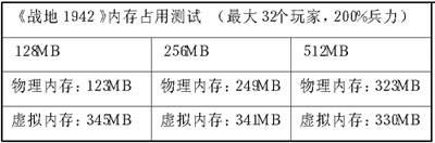 可以看到《战地1942》的内存占用比《魔兽争霸3》要高得多,此时256MB组也显得有点吃力,不过游戏的速度还不错,在占用同样多虚拟内存的情况下,拥有更多的物理内存使得256MB组也没有出现停顿的情况。相对剩余空间只有5MB、游戏载入时间较长、偶尔出现长时间停顿的128MB组来说,256MB内存已经能够满足《战地1942》的一般要求了。512MB组的表现不错,完全没有出现停顿的情况,游戏速度十分流畅。