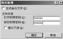 以后,我们在打开加密工作簿文件时,如果两项均设置了密码,只有两项密码都输入正确,才能完整打开相应的文件;如果只设置了“打开权限密码”,只要输入正确的密码就能打开相应的文件;如果只设置了“修改权限密码”,只有正确输入该密码,才能完整打开工作簿,也就是说既能浏览文件,也能对文件进行编辑修改,否则可以以“只读”方式打开文件,但是,对文件所做的编辑修改不能保存到原文件中(可以另存为副本)。