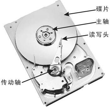 硬盘将军是通过若干张碟片来存放“粮草”(数据),而通过一个浮在碟片上方的磁头来读写数据(磁头与碟片不接触),在读写数据时,碟片由马达带动高速旋转,最后通过接口来传输数据(图1)。