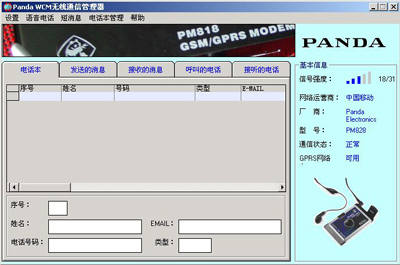 使用PCMCIA卡本身所带驱动光盘,按照说明书操作步骤安装驱动及所带的应用软件。熊猫PM828附带无线通信管理器应用软件(WCM),它可用来管理语音电话、短信服务及设定GPRS参数。