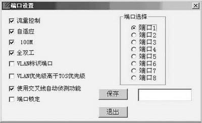 在“自适应”项中,如果选中,则表明是将该端口的自适应功能打开,否则就是关闭这项功能;在“100M”项中,如果选中就是将该端口速度强行设置为100Mbps,如果没选中就是将该端口的速度设置为10Mbps;在“全双工”项中,如果打开,则允许全双工操作,如果关闭,则不允许全双工操作。通过更改这些选项,就可以实现对端口速度和双工状态的控制。在绝大多数情况下,应该打开这些选项,在默认情况下,这些参数也是选中的。但是在某些情况下,如所连接的设备不具有自适应或全双工特性,就会导致网络速度奇慢无比,此时需要手动更改端口的参数,使之与所连接的设备相匹配。
