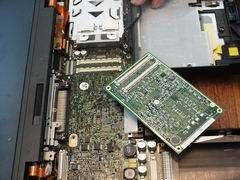 CPU的升级较内存的升级就更加复杂了。还是先分析一下升级的可行性。与台式电脑不同,笔记本电脑的封装形式、针脚类型比较复杂。打个比方,TP600这个就使用了两种封装形式,MMC1和MMC2,从外观上看,这种封装的CPU已经不像是台式电脑或者P3-M那样的外形,而更加像是一块电路板。事实上拆开MMC封装的CPU,你就会明白,这样封装的CPU是包含了主板的北桥芯片和一些简单电源芯片的电路板。所以实际意义上这已经不单纯是一块CPU了,而是一整块复杂的电路。这样的好处是最大程度地简化主板上的设备,减少设计成本。但是缺点同样明显,使用这种封装的机型都不可能做得非常薄。并且MMC1与MMC2封装并不兼容,外观上也有明显的区别,MMC1的插槽是两条的,MMC2的插槽是一条的,非常好辨认。升级的时候首先要注意的就是封装的类型,两者互不兼容,但是在不拆机的情况下也可以大概分辨出封装形式,从而决定是否要进行升级。分辨的方法是:TP600的CPU全部采用MMC1的封装,TP600E采用的既有MMC1的也有MMC2的封装,而TP600X全部采用MMC2的封装。