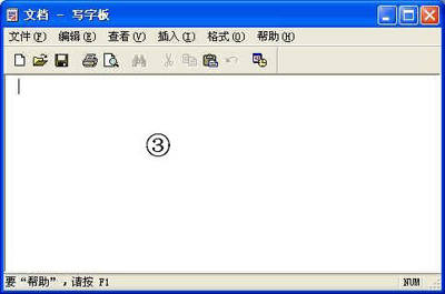 ①单击“开始”按钮,打开“开始”菜单。②指向“所有程序”,打开“所有程序”子菜单,指向“附件”,打开“附件”子菜单,指向“写字板”,单击鼠标左键。③打开“写字板”窗口。