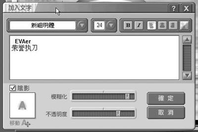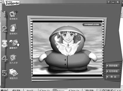 好歹玩一次换脸,若留不下自己的大名岂不遗憾!别急,点击“加入文字”图标将文字制作窗口打开(图5),呵呵,看来通过各种选项还能留下几个艺术字啊!文字窗口内的功能选项很简单用不着笔者啰嗦了。最后用鼠标把文字拖到图片的左上角位置,搞定!