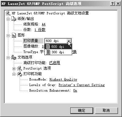 下面以“HP LaserJet 6P PostScript”激光打印机为例,介绍打印分辨率设置方法。