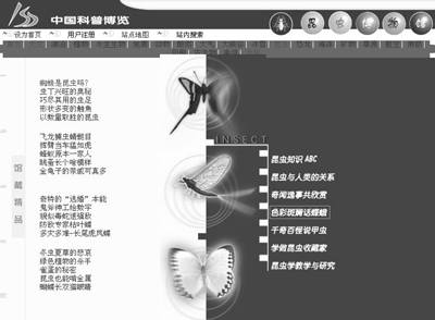 顾名思义,“中国科普博览”(http://kepu.jsinfo.gov.cn)是一个科普知识的大宝库,天文地理无所不包。相比其他专业的科普网站,“中国科普博览”的最大特点是图文并茂,深入浅出,页面也非常漂亮。虫虫当然最关注“昆虫博物馆”,点进去一看,哈,内容还真不少──“昆虫知识ABC”、“色彩斑斓话蝶蛾”等都是很有意思的科普文章。同样,别的栏目也各有特色,推荐!