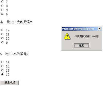 适当修改网页代码,将它粘贴到你的网页中,再与ASP等语言结合,将使你的网页也具有网上考试、传送成绩的功能。