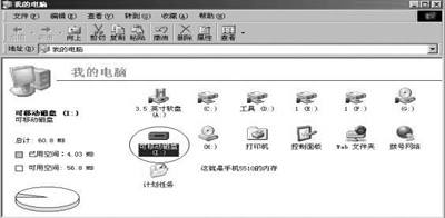 我想手机本身只能识别.mp3格式的文件,那我就把别的格式改成.mp3格式看一看,如果好使再改回原来的格式。不好使!提示说非法格式不操作。正当我一筹莫展的时候,无意间打开“我的电脑”,咦!多了个驱动器,显示是“可移动磁盘”。(如图1)