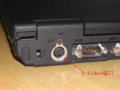 笔者用的笔记本电脑是IBM T21,要把T21上的影像传输到电视机上,首先要买一根视频线,T21的视频输出口是S-Video口(图1,这是本本上最常见的视频输出口,还有一种是RCA接口的复合视频输出端口),所以视频线也应该是S-Video线。