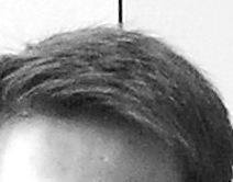近景、人物和室内家居的拍摄效果也是体现相机效果的关键,因为室内光线没有室外自然光充足。看看上面的照片(是在自然光充足的窗边,室内开启日光灯,相机为自动白平衡模式),拍摄的人物半身照,右侧是面部的局部。我们看到,肤色色彩比较真实,眉毛和头发的细节也表现得很好,人物面部轮廓明暗程度体现得很好。不过我们将图片放大后,发现一些光线不足的地方躁点比较多。