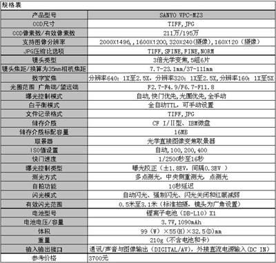 1.SANYO VPC-MZ3的实际像素为211万,有效像素为195万,采用1/1.8英寸CCD。